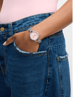 This glamorous watch features a Silver Plated round case, sleek pink dial and multistrand beaded chain bracelet strap.