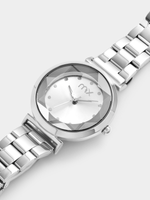This stylish Silver Plated bracelet watch features a round case, sleek silver dial and quartz look glass.