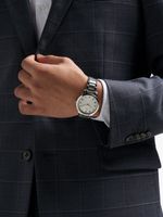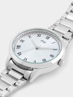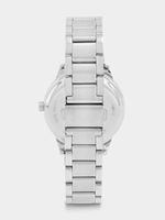 This stylish watch features a Silver Plated round case, silver toned dial and Stainless Steel strap.