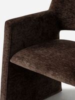 Dine in luxurious comfort with the fully upholstered Nathi Dining Chair. Its seamless design, with arms and legs flowing together in one graceful curve, creates a sculptural silhouette that elevates any dining space. The generously padded seat is deep and plush, comfortable enough to double as an accent chair. Stylish and elegant, it is a sophisticated addition to a considered, modern home.