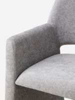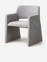 Dine in luxurious comfort with the fully upholstered Nathi Dining Chair. Its seamless design, with arms and legs flowing together in one graceful curve, creates a sculptural silhouette that elevates any dining space. The generously padded deep seat is comfortable and inviting, perfect for long, luxurious dinner parties or as an accent chair. Stylish and elegant, it is a sophisticated addition to a considered, modern home.