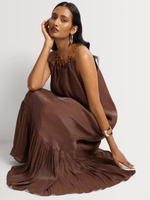 The Luella Neckpiece Maxi Dress makes a statement with its bold trapeze style and intricate neckpiece detail. Add coordinating jewellery and strappy heels for an occasion or event.