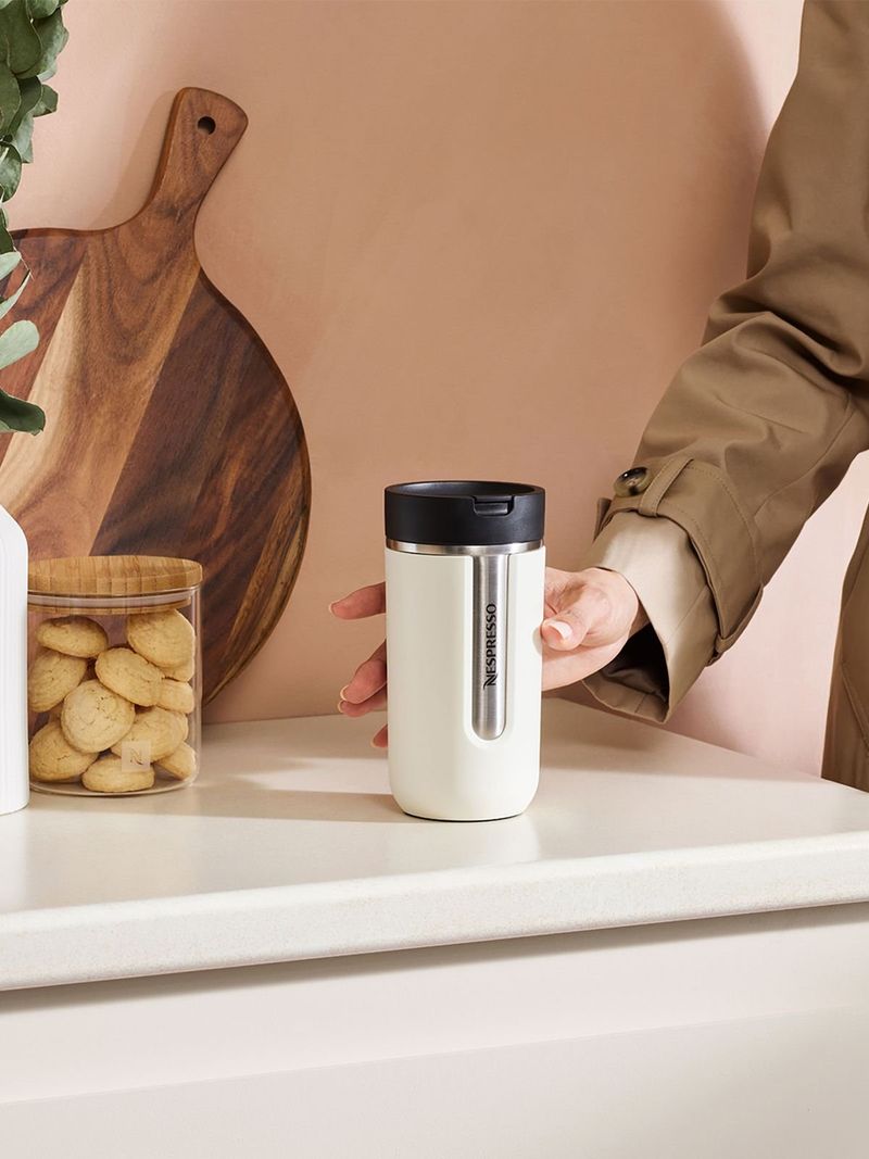 Enjoy your favourite coffee on the go with the Nespresso Travel Mug. Whether you’re enjoying a hot or iced coffee, the double-walled, 90% recycled stainless steel inner body keeps your beverages just the way you like them. With an easy-clean latch and a design that’s great for any journey, this travel mug is ready to go wherever life takes you.