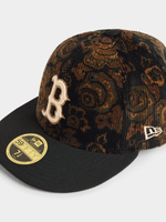 Introducing the New Era 59FIFTY Boston Sox Corduroy Floral Brown Cap. Made with soft cotton fabric for comfort. Features a stylish floral design. Great for everyday wear. A perfect addition to your collection. Supplier style_60763879_ARC.