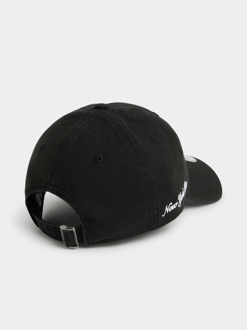 Stay stylish with the New Era Washed Script 9Twenty Black Cap. Made of cotton for a comfortable fit. Features a classic peak cap silhouette. Perfect for any casual outfit. Elevate your look with this versatile accessory.