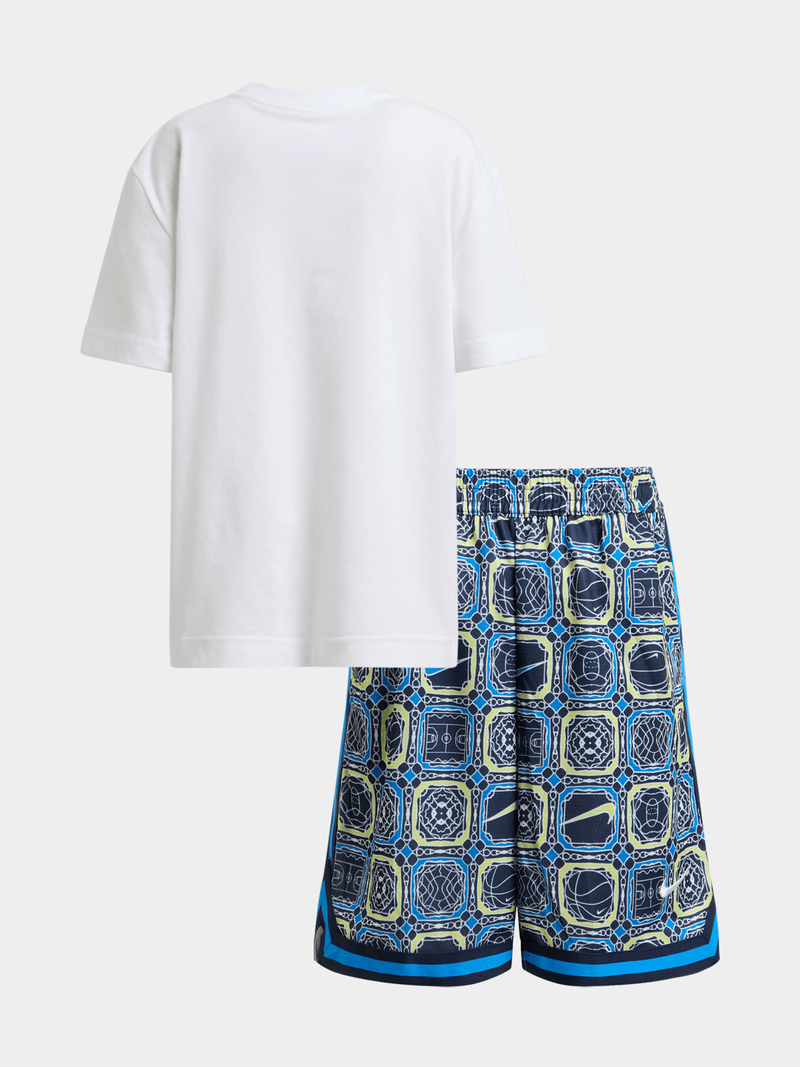 Get your little one ready for action with the Nike Kids Dri-Fit DNA Blue/White Shorts Set. Made with a comfortable cotton polyester blend, this set is perfect for active days. Stay cool and dry with Dri-Fit technology. Perfect for all adventures. Supplier style_86M775-695.