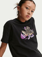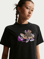 Stay trendy with this black, boxy t-shirt from Nike for kids. Made with a comfortable cotton blend fabric, this tee is versatile for any casual outfit. With a relaxed fit, it's perfect for everyday wear. Brighten up your little one's wardrobe with this stylish addition. Supplier style: II0884-010