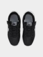 The Nike Kids Cortez Sneaker in sleek black and white is a stylish and comfortable choice for everyday wear. Made with synthetic leather, it's durable and easy to clean. Perfect for active kids with a sporty style. Easy to put on and take off. Great for all-day play! Supplier style (DM0951-001)