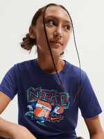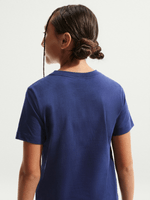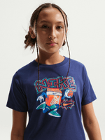 Elevate your little one's wardrobe with the Nike Navy Boxy T-Shirt. Crafted from a comfortable cotton blend fabric, this stylish tee is perfect for everyday wear. The relaxed fit and cool hoops design make it a must-have addition to any casual outfit.