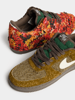 We created this Air Force 1 '07 to celebrate the colours and changes that come when winter approaches. An overlay shroud features the beautiful colours and shapes of maple leaves as they transform and fall. Peaking through the shroud is a suede and synthetic leather upper that channels stone lanterns and moss. What's more quintessential autumn than fallen leaves under your sneakers? Fallen leaves on your sneakers.(Supplier Style:IM8062-368_ARC)