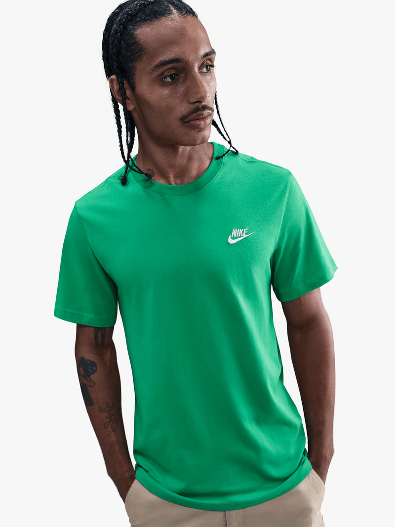 Upgrade your casual style with the M Nike Green NSW Club Tee. Made from comfortable cotton fabric, this tee is perfect for everyday wear. Highlighted by its classic design, this tee is easy to pair with your favorite bottoms. With a true-to-size fit and a range of available colors, this tee is a versatile addition to your wardrobe. Supplier style is (AR4997-330).