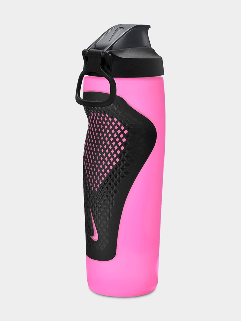 Keep hydrated on and off the court with this Nike Refuel Locking Lid Water Bottle. It holds 24 ounces and features a fast-flow, leak proof valve and a squeezable material. The handle is foldable for easy storage and carrying. A strategically placed overlay adds comfort and grip to the bottle.