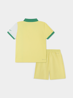 This tennis inspired set is not just for the court: your kiddo can wear it to the playground, to school, or to relax at home. The poly knit polo top is a roomy silhouette with lightly dropped shoulders that relax the fit and the matching shorts are made of woven recycled poly fabric with a stretch waistband for a comfy fit. For additional comfort, both pieces are boosted with quick-drying, moisture-wicking, Dri-FIT technology to help keep kiddos cool and dry while at play.