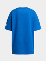 Classic Nike t-shirt in blue with a large, white brand and logo print on the front and a smaller one on the left sleeve.