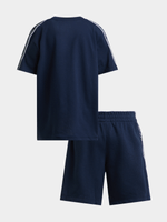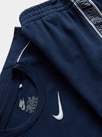 Keep it cool and coordinated with the Nike Poly Knit Shorts Set for Kids in Navy. This matching set includes a regular fit t-shirt and elasticated waist shorts, both made from soft poly knit fabric for all-day comfort. Whether worn together for a sporty look or styled separately, this versatile duo is perfect for playtime, school, or weekend outings.