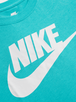 Elevate your kid's wardrobe with the Nike Futura Evergreen T-Shirt in vibrant green. Made from a soft cotton-polyester blend for all-day comfort. This stylish tee is perfect for everyday wear, featuring a classic Nike logo graphic. Add a pop of color to any outfit with this versatile and durable shirt. Supplier style_86J575-BA2/001.