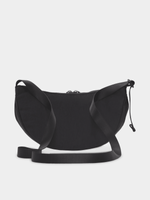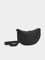 Introducing the Nike Aura Crescent Crossbody Bag in sleek black. Made of durable polyester fabric, this stylish bag is perfect for on-the-go essentials. Featuring a convenient crossbody strap and spacious interior, it's the perfect blend of fashion and function for everyday use.
