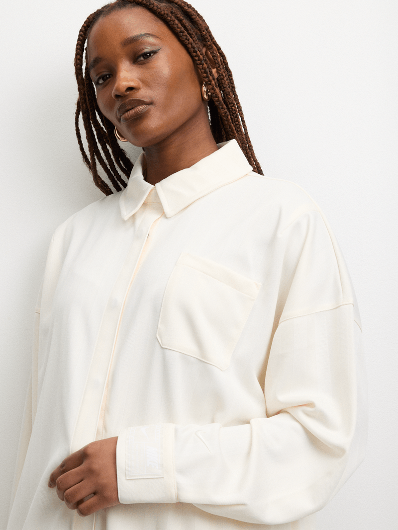 This spacious jacquard shirt adds subtle dimension to any look. A hidden button closure gives you styling versatility. Supplier style is (HV1956-110).