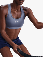 You're on the move. Your padding shouldn't be. This Swoosh bra's sewn-in pads stay in place so you can work hard without worrying about them shifting or folding. Great for training workouts and dance classes, medium support gives you a snug hold that helps keep everything in place. Plus, the sweat-wicking, adaptive material quickly recovers its shape so you can stay comfortable throughout your workout.