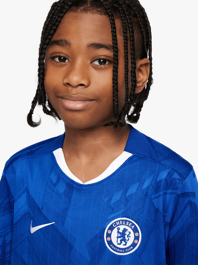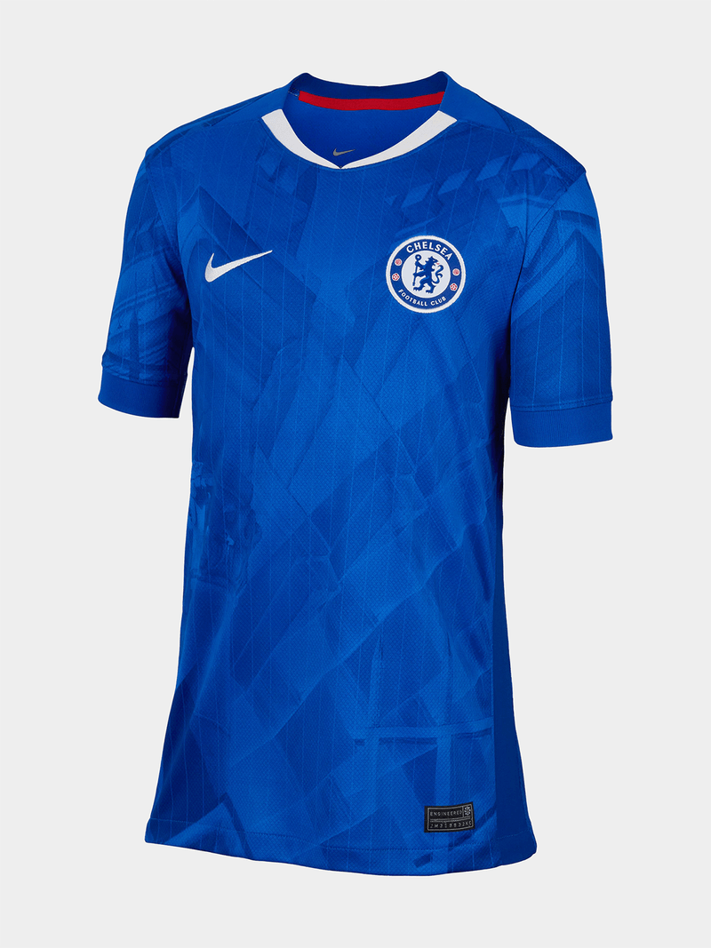 Celebrate the storied history of the club and the ever-evolving, vibrant spirit of London with Chelsea FC's 2025/26 Home kit. This replica jersey features classic Chelsea blue and a subtle print inspired by the city’s architecture.