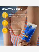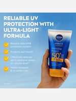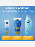 NIVEA Protect and Moisture Invisible Finish SPF 50+ Sun Lotion offers advanced protection against both short- and long-term UV damage.