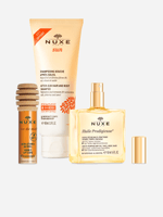 This summer sun offer contains a Huile Prodigieuse 50ml, Rêve de Miel Lip Care 10ml as well as a Nuxe Sun Aftersun Hair & Body Shampoo 100ml beautifully presented in an exclusive yellow and white design bag - the perfect accessory and spacious enough for your beach essentials.
