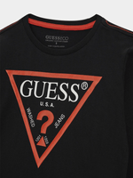 Introducing the Guess Black T-Shirt_Core for older boys! Made from 100% cotton with cool wash instructions. This stylish tee is perfect for everyday wear. Crafted in Bangladesh with a cool iron finish. Stay comfortable and trendy with Guess.