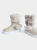 Elevate your little one's winter style with our adorable grey snow boots featuring playful pom poms! Keep her cozy with the faux fur cuff and enjoy easy on-off with the side zip. Perfect for young adventurers. Step into fun and comfort!