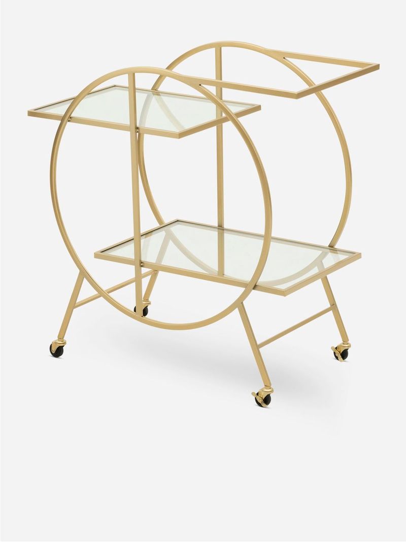 A toast to elegant drinks evenings at home. The geometric yet minimalist and airy design of the Orbit drinks trolley makes entertaining an art. With two shelves for storage, this bar cart is set on wheels for easy mobility so you can take the party anywhere.