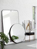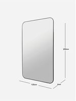 Our Oversized Floor Mirror makes a bold statement in any room with its generous size and understated details. A slim black powder-coated frame enhances its timeless silhouette while the rectangular shape, softened by rounded corners, strikes the perfect balance between modern minimalism and effortless elegance.
