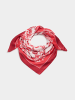 Treat yourself to the vibrant Paisley Print Square Scarf. Made from 100% polyester with a silky satin finish. This stylish accessory is perfect for any occasion. Enjoy the intricate paisley design in striking red. Add a pop of color to your outfit and elevate your look effortlessly. Trendy fashion piece that is returnable and ready to impress.