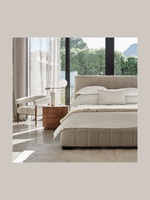 Create a plush and inviting sleep sanctuary with the Panel Bed. Fully upholstered with on-trend channel tufting from headboard to base, all-over cushioning provides luxurious comfort for the ultimate sleep experience. Clean lines and a modern shape make it the perfect choice for contemporary decor styles.
