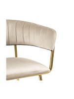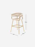 Curved shapes and comfort velvet upholstery, the Peplum Barstool is a glamorous addition to your entertaining at home style. Gold plated legs and soft velvet fabrication make this a stand out piece for your guests.