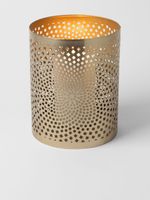 Create a magical atmosphere with our Pierced Metal Pillar Candle Holder. Burn a pillar candle in the centre and enjoy gentle refracted light diffused through the intricate cutout design. Combine it with the taller version for a layered look. Ideal for a dining table or patio space.