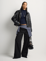 Add effortless edge to your look with our Pleather Raglan Sleeve Belted Biker Jacket. Made from faux leather with a zip-through front and classic collar, wear it with a floral dress for a soft contrast, or with denim and a fresh white tee for timeless style.