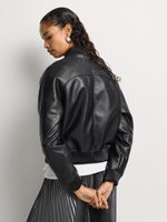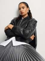 Add effortless edge to your look with our Pleather Raglan Sleeve Bomber Jacket. Made from faux leather with a zip-through front and classic ribbed neck, wear it with a floral dress for a soft contrast, or with denim and a fresh white tee for timeless style.