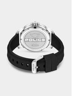 This stylish watch features a Stainless Steel round case, black dial and black silicone strap.