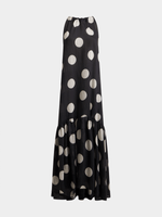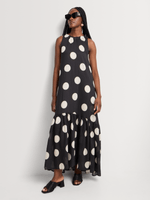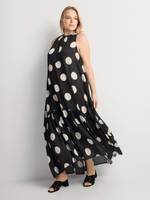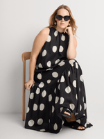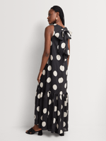 Turn heads in our Polka Dot Halterneck Trapeze Sundress made from a luxurious tencel blend. This maxi dress is perfect for any summer occasion. Features a sleeveless design and a flattering silhouette.