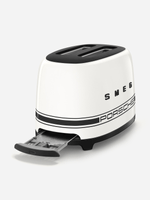 The ultimate kitchen addition for Porsche enthusiasts, the Porsche x SMEG Toaster combines iconic design and functionality. Inspired by 50's style, it features the signature Porsche stripe across the body and refined details like matte black accents. The custom-designed interface, featuring the numbered control knob and dedicated function buttons, adds a distinctive and sporty touch.