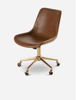 A sophisticated seat for the contemporary home office. Finished in a beautiful tan PU seat and brass wheeled legs, the Portman Office Chair is a stylish alternative to the usual office essentials. Includes a brass gaslift lever for height adjustment.