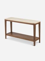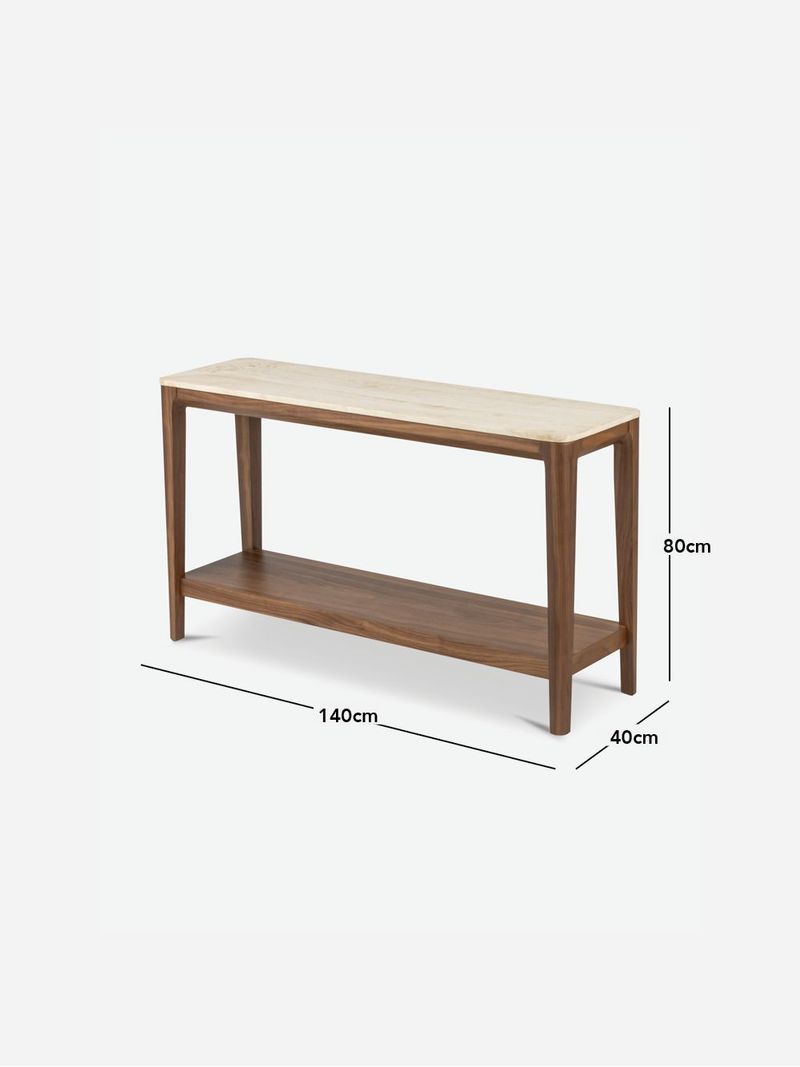 Bring timeless elegance to your home with the Prague Console. Rich walnut tones, rounded corners and subtle tapered legs hold a beautiful white marble top with rich veining, creating a sophisticated style that elevates your living room. Ideal for bringing detail and interest to an open space - place plants, lighting or decor on the top surface, and smaller items like books or sculptures on the bottom.