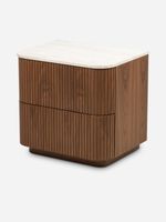 Refined and elegant, the Prague Pedestal is a sophisticated addition to your bedroom. Warm walnut veneer with sleek fluted detail exudes a timeless, mid-century modern aesthetic. A smooth marble top brings a contemporary feel to the piece.