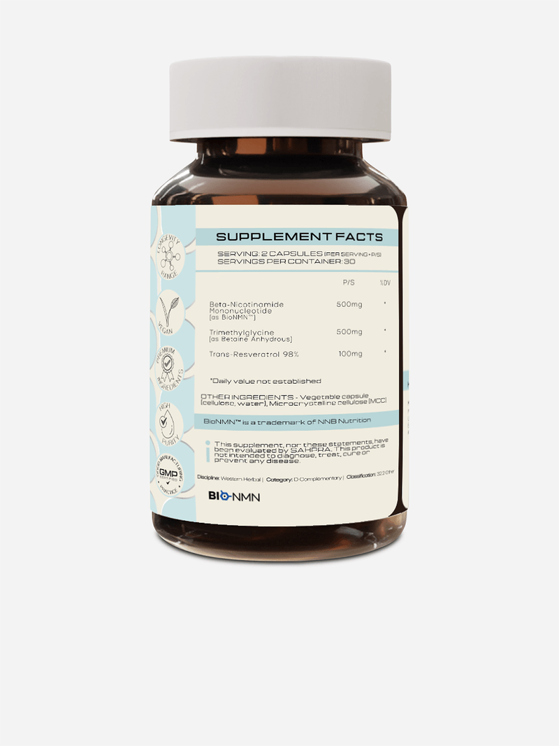 All-in-one NAD+ support with Bio-NMN®, TMG, and Trans-Resveratrol. Boost energy, cellular health, and healthy aging with this powerful longevity complex.