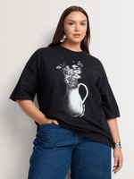 Graphic tees are a wardrobe essential. Made from lightweight and breathable cotton, our Printed Flower Vase Oversized T-Shirt is the perfect pick for wearing with on-trend wide-leg denim, mini skirts or shorts.