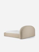 Modern and sculptural, the Proust Bed makes a style statement in the bedroom with its soft curves and wide profile. Fully upholstered in a beautifully textured fabric, the rounded profile headboard features a wide, deeply tufted edge for a luxurious and comfortable rest.