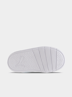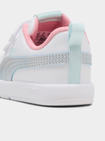 The Toddlers’ Puma Courtflex V3 Space Belle V in White/Silver is a whimsical, high-shine sneaker designed for little explorers with big imaginations. Featuring a crisp white synthetic upper, this "Space Belle" edition is brought to life with shimmering Metallic Silver accents and playful, celestial-inspired detailing. Built for independence and comfort, it features a dual hook-and-loop strap closure, allowing for a secure fit that is easy for parents and toddlers to manage. The lightweight, flexible construction ensures natural foot movement, while the durable rubber outsole provides the grip needed for first steps and playground adventures.