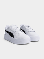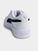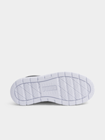 Introducing the PU Kids Puma Karmen II White/Black Sneaker, crafted with PU fabric for durability. This versatile shoe is perfect for everyday wear, featuring a comfortable fit and stylish design. With a non-gender-specific look, these sneakers are suitable for any wardrobe. Plus, they are returnable for added convenience. Elevate your outfit with these trendy kicks!
