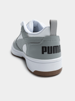 Step up your sneaker game with the Puma Rebound V6 Low in White/Grey. Made from durable PU fabric, these sneakers are versatile and stylish. Perfect for everyday wear, these kicks are comfortable and trendy. Elevate your look with the Puma Rebound V6 Low today!