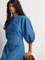 Denim dresses are an on-trend style this season. Wear our FF Denim Puff Sleeve Dress with flats for a casual look of dress it up with heels for a different take.