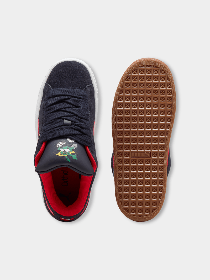 This fresh take on the classic Suede draws inspiration from PUMA’s heritage within breakdancing and its influence on modern streetwear. The Suede XL retains the Suede’s iconic DNA, but gives it a twist with an exaggerated padded collar and tongue, plus a chunkier sole. This execution features a full suede upper with a leather Formstrip.(Supplier Style:404956 01)